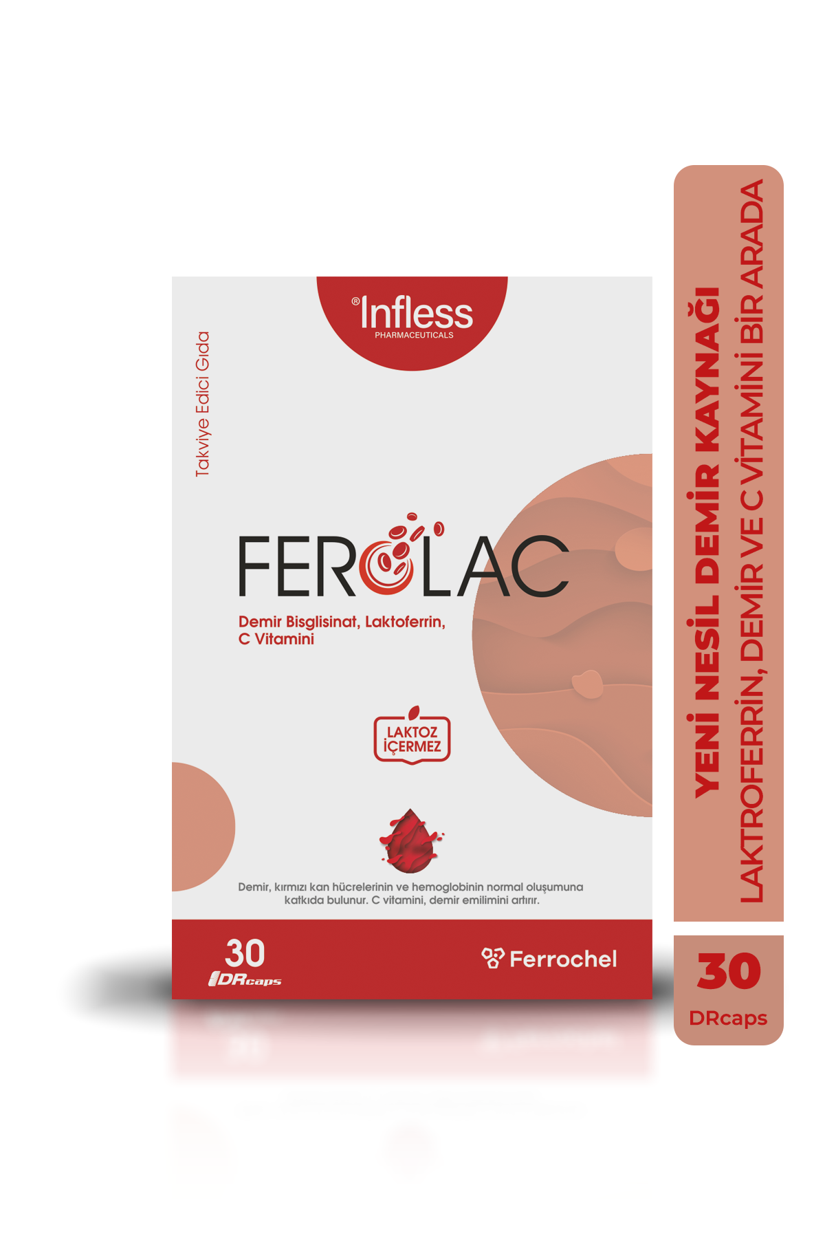 INFLESS Ferolac Demir (Bisglisinat Şelat), Laktoferrin ve C Vitamini – 30 Kapsül
